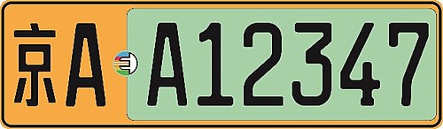 大型新能源汽車號牌為黃綠雙拼底黑字黑框線