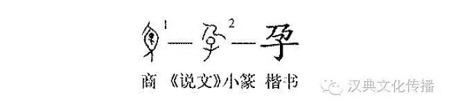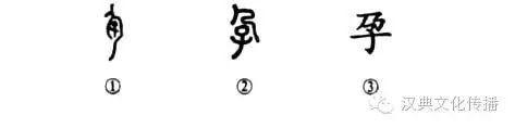 這個“懷孕”的“孕”字是個會意字。甲骨文①的外部是面朝左側立的一個人,腹中有“子”,誠有“十月懷胎,一朝分娩”的樣子。②是小篆的形體,其上變為“乃”字,根本沒有人形了,只是下部的“子”還依然存在。③是楷書的寫法,直接由小篆演變而來。