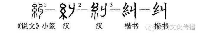 會意兼形聲字。《說文》:“糾,繩三合也。從糸、丩。”“糾”是“丩”的分化字。《玉篇·丬部》:“糾,絞也,繚也。”“丩”本像糾纏形,后加意符“糸”表義更加明確。《說文》以為“糾”本義是三股絲麻絞合的繩子,可能是”糾”的引申義。在現(xiàn)在常用的“糾纏”中,“糾”用的還是本義。“糾”字從糸、丩,丩亦聲。此字出現(xiàn)較晚,《說文》小篆以前的古文字形尚未發(fā)現(xiàn),已見的漢隸字形與楷書差別不大。(李守奎)