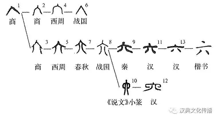 ”,隸變后則變為點和橫。本義當為草廬,是“廬”的初文。“六”古音相近,所以假借為數詞“六”。依陰陽理論,六是陰數,即《說文》所謂“六,易之數,陰變于六”,所以又指《易》中的陰爻。《易·坤》:“用六永貞,以大終也。”(王穎)
