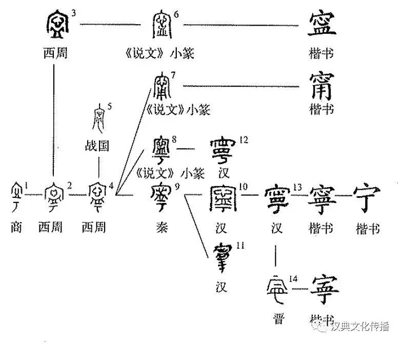 (用)”,延續(xù)到后世(參見(jiàn)“甯”字條)。秦漢之后的基本形式是“寧”。晉代出現(xiàn)過(guò)簡(jiǎn)寫形式“
