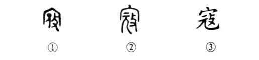 這是“宜將剩勇追窮寇”的“寇”字。①是甲骨文的形體,外面是一座大房子,里面的左邊是面朝左站著的一個人,右邊的“攴”就是一只手舉著有杈的棍子(或鞭子)打人,這種關起門來行兇的人不是好人,所以稱為“寇”,如“匪寇”、“盜寇”等。可見“寇”字是個會意字。②是小篆的形體,也還能看出在房內打人的意思。但是到了楷書③就大變樣了。