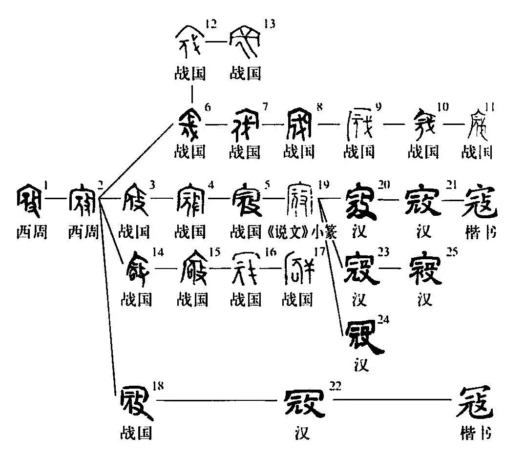 等。《說文》順承主流結構,然分析作從攴從完,與源頭階段文字不盡相合,可視為理據重構。隸變時,楷書筆勢化作寇,從冖者則作寇。構件攴或作殳(shū,兵器)