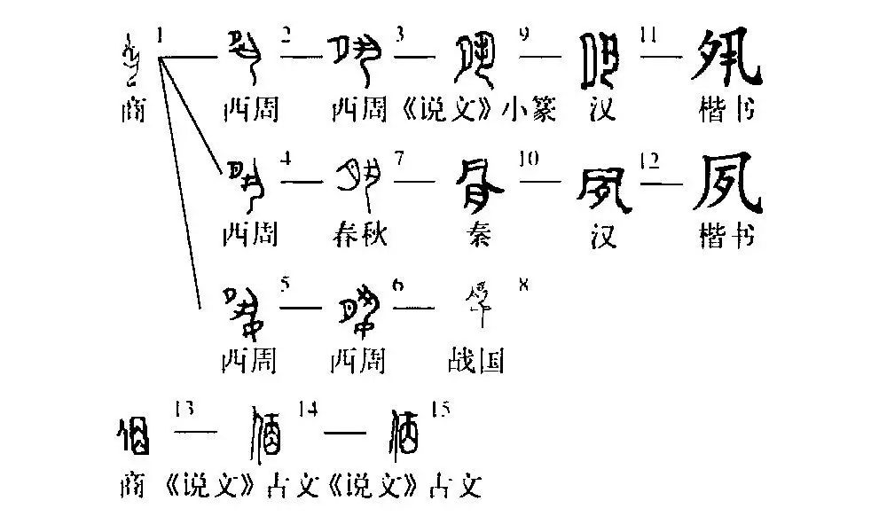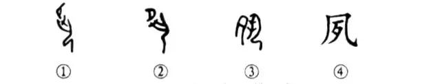 這是“夙(sù速)夜匪懈”(晝夜不息)的“夙”字。你看甲骨文①的左上方是個“月”形,“月”下跪著一個人,揚起雙手表示勞作。多勤勞啊!天不亮就起來干活。金文②的左邊仍為“月”形,右邊是一個人。小篆③左邊為月形,但其右邊的“人”形已經偽變得很不像了??瑫軇t把“月”(夕)變到“凡”中了,根本看不出“月”下有“人”形,變成了純文字符號。