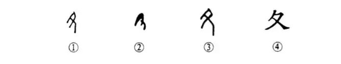 這個“夂(zhǐ 紙)”字是個象形字。甲骨文①很像腳根朝上、腳趾朝下的一只左腳。金文②那就更像一只左腳了。③是小篆的形體,與甲骨文①的形體相類似。楷書④就根本沒有腳的樣子了。
