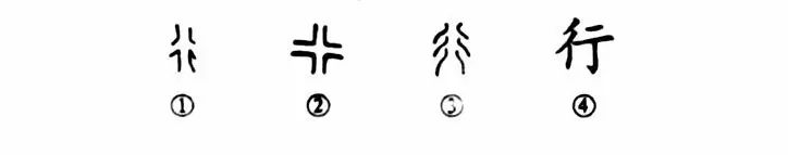 “走林而射鳥,行畔而觀魚。”這個“行”字是個象形字。甲骨文①中間是一條大路,左右兩側又分出了兩條小路。金文②的形體是東西南北都能通行的十字路口。③是小篆的形體,變得根本看不出通行道口的樣子了。④是楷書的寫法。
