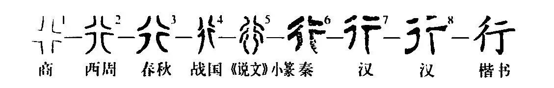 ,許君誤認為二字者,蓋由字形傳寫失其初狀使然矣。”行本義是道路。《詩·小雅·小弁》:“行有死人,尚或墐之。”(道路上躺了個死人,還有人來埋葬他)從道路義引申出行列義,從行列義又引申出排行、行業等意義。這些意義的“行”讀為háng。從道路引申出行走義,從行走義又引出流行、通行、施行、經歷、巡視、行為等意義。這些意義的“行”讀為xíng。由行為義引申出行跡義,作名詞用,舊讀為xìng。“行行”(剛強的樣子)中的“行”,舊讀為hàng; “樹行子”中的“行”今天仍讀為hàng。“道行”中的“行”讀為héng。 “行”字原來橫平豎直,四個角均為直角,后來橫豎均彎曲變斜,上邊兩角變大,下邊兩角變小。今天的“行”可以拆為“彳(chì)”和“亍(chù)”兩個字了。(師玉梅)