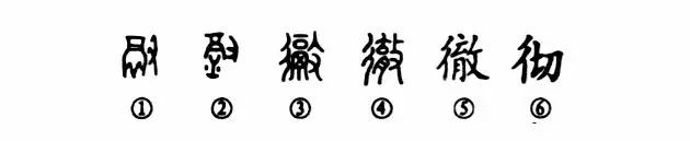 這是“貫徹于始終”的“徹”字,本為會意字。甲骨文①和金文②的左邊是“鬲(食具)”,右邊是“手”,這表明吃過飯以后撤去食具。③是《說文》中的古文形體。又在其左邊增加了“彳”,表示移動。④是小篆的寫法,原來的“鬲”、“手”訛變為“育”、“攴”。但詞義未變。⑤為楷書繁體字。⑥為簡化字。