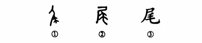 長了一條大尾巴。小篆②的上部為“尸”,其下為“毛”(尾巴)。③是楷書的寫法,根本看不出人長尾巴的形象了。實際上“尾”字是個象形字,特別是“毛”更像尾形。