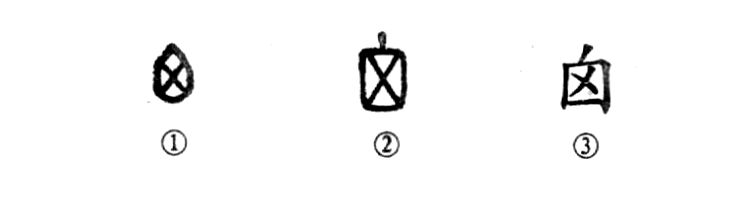 個“囟”字讀作xìn,原為象形字。甲骨文①像人頭的形狀,中間的“X”表示小兒頭上的“囟門”。②是小篆的形體。③為楷書的寫法。