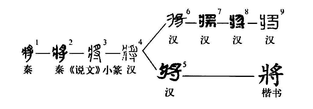 會意兼形聲字。戰國文字作從又持肉于爿(chuáng,古床字),爿亦聲。形旁又、肉、爿分別為手、肉、床的象形字,三者結合會持取意;聲旁爿同時表音,將與爿并齒頭音、陽韻。古初借??(??、??)為將,后分化出《說文》所謂“從寸,??省聲”之“將”字。戰國時形旁又開始作寸,寸與又是形義皆近偏旁之更易,不影響本義。《說文》從此作出有別于古文字的結構分析,當是有依據的理據重構。此后隸變即在此基礎上進行,楷書作將,是小篆的筆勢化,簡化字作將。本義是持取。《荀子·成相》:“吏謹將之無鈹滑。”引申指扶助。《詩·周南·樛木》:“樂只君子,福履將之。”亦引申指養護、順從、遵奉、推進等。假借作助動詞,想,要。《包山楚簡》2.147:“將以成收。”引申為時間副詞,主要表將來時。馬王堆漢墓帛書《春秋事語》:“長將畏其威。”以上讀jiāng。指將軍、統領。馬王堆漢墓帛書《五星占》:“破軍殺將。”古代此義多假“??”字表示,郭店楚簡此種用法非常多,以致《古文四聲韻》將此通假字作本字收入。以上讀jiàng。助動詞,請,愿。《詩·衛風·氓》:“將子無怒。”以上讀qiāng。含雜質之玉,讀yáng。通“漿”,液態流質。云夢秦簡《日書》甲種:“入人醯醬滫將中。”馬王堆漢墓帛書《五十二病方》:“因(咽)敝,飲藥將。”《說文》有“??”,從手爿聲,訓扶,與將同聲韻。《玉篇》謂??“今作將”,《汗簡》與《四聲韻》并作將的重文列出。二者究竟是否一字,存而待考。(張標)
