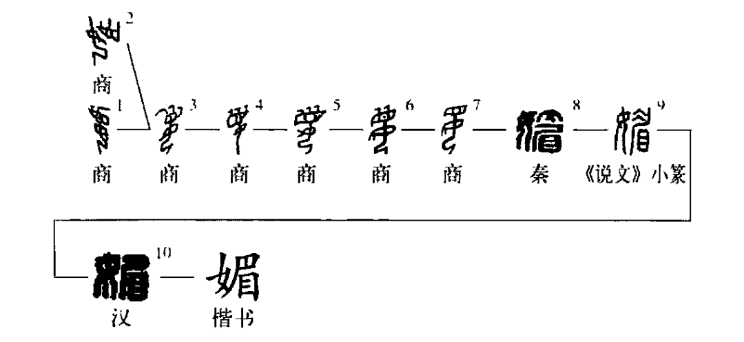 形聲字。從女,眉聲。甲骨文“媚”字所從“女”多在“眉”下,商代金文承之。子媚爵“媚”字所從的“眉”或訛省為“目”?!懊肌睆摹澳俊保舷衩贾?,詳參“眉”字條。本義是喜愛(ài)。《說(shuō)文》:“媚,說(shuō)(悅)也。”《詩(shī)·大雅·下武》:“媚茲一人。”鄭玄箋:“媚,愛(ài)也。”引申義有巴結(jié)、討好、美好等。商代甲骨文、金文“媚”,均為人名。(徐在國(guó))