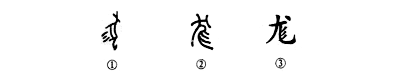 這個“尨”字讀作máng,本為象形字。①為甲骨文的形體,像一條尾朝下頭朝上的狗,腹下有長毛之狀。②是小篆的寫法。③為楷書的形體。