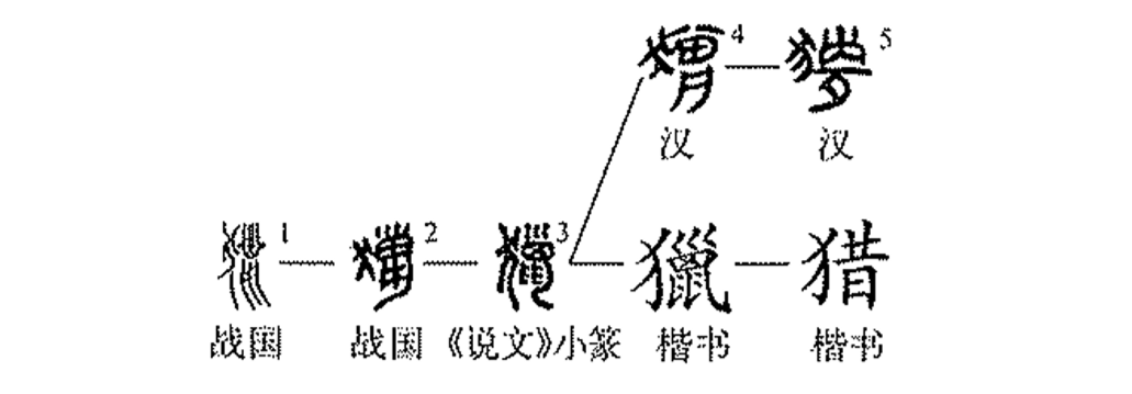 形聲字。從犬,巤聲。本義為捕捉禽獸、打獵。《說文》:“獵,放獵逐禽也。”《詩·魏風·伐檀》:“不狩不獵,胡瞻爾庭有縣貆兮?” (從來不曾去打獵,為何你家院子掛有獾呢?)鄭玄箋:“冬獵曰狩,宵田曰獵。”馬王堆漢墓帛書《老子乙》:“驅騁馳獵而不禽芒(荒)。”由捕捉禽獸引申為搜尋、追求、涉獵等義。戰國金文為左“犬”、右“巤”,秦簡、小篆與之一脈相承;漢代簡帛文字“巤”有所訛變簡省;楷書由小篆演變而來,寫作“獵”。現代漢字簡化時,人們參照“臘”、“蠟”的簡化方法,借用“獵(xī,獸名;què,良犬名)”作為“獵”的簡化字。(郭小武 葉青)