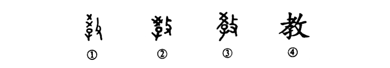 ,楷書作教,是筆勢、筆意變化的結果。古施受同詞,教學同字,后代分化為二字。故靜簋之學,或讀教(參“學”字條);楚簡之教,或讀學(見本條下),《古文四聲韻》以??為學。正因為二字有著這種關系,所以在字形上也有所體現。西周時的