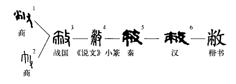 會意兼形聲字。從?,從攴,?亦聲。甲骨文從攴,從巾。右邊是手持木棍抽打巾,左邊的“巾”是一塊布,布上的點表示破碎的布屑。戰國文字承襲甲骨文。右邊“