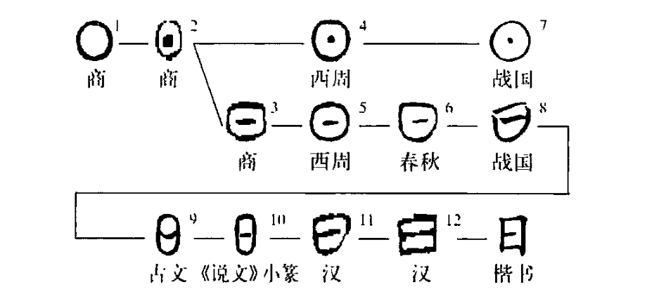 象形字。初文像太陽之形,后由于書寫不便,筆畫由圓轉變為方折,象形之意漸失。“日”的本義就是太陽。甲骨文:“子貞:日有戠,告于河。”(《合集》33699)意思是太陽有黑點之義。《說文》:“日,實也。太陽之精不虧。從口、一,象形。”太陽本身是個發光體,所以日光也稱為“日”。由于地球繞太陽運行一周為一個恒星日,也就是一天,所以一個晝夜也稱為“日”。后來詞義縮小了,專指狹義的“白晝”為“日”,以與“夜”相對。后又引申為時候、時代、日子。又因為“日”的唯一性,所謂“天無二日,人無二主”,所以“日”也用于比喻君主。《廣雅·釋詁一》:“日,君也。”(王志平)