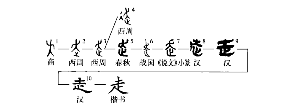 ,小篆“走”字從“夭”,乃形體之訛變。據古文字學家研究,小篆以前沒有