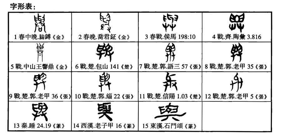【注釋】①黨與:朋群。②從舁從與:《段注》:“會(huì)意,共舉而與之也。”朱駿聲曰:“按:與聲。”按:當(dāng)從朱氏之説。舁為共舉,引申有衆(zhòng)意,故訓(xùn)黨與。